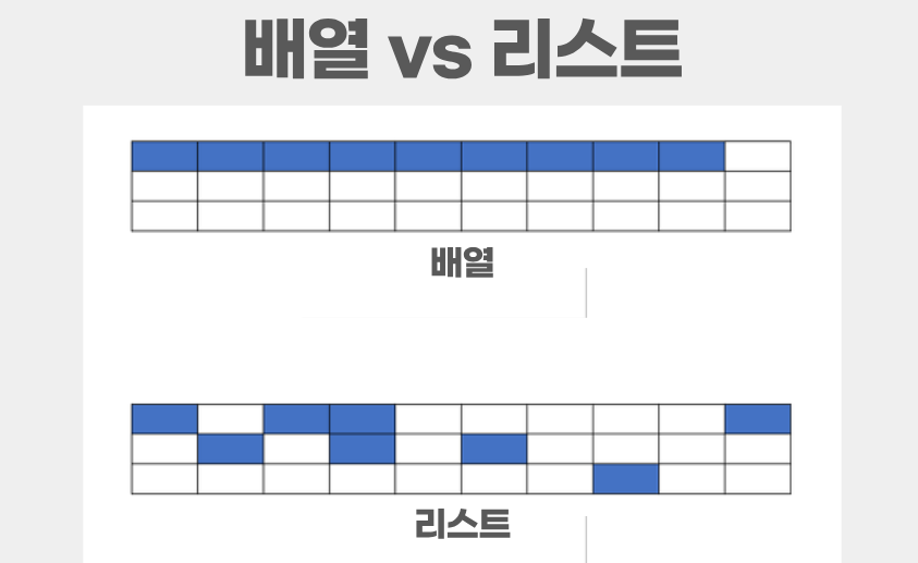 이 사진 때문에 나온 말인데, 배열과 리스트의 메모리 저장 방식을 표현한 것이라고 한다. 이 표에서 보이는 것처럼 메모리상 연결이 안되어 있는 것이 아니냐 하지만 연결 되어 있는 것이 맞다. 왜냐하면 마이크로소프트에서 List를 정의한 파일을 보면 주석으로 '배열을 사용해서 크기가 변동되는 리스트를 구현했다.'라고 설명한다. 그렇기 때문에 결국 리스트는 하나의 배열이라고 보면 된다. 다만 그림처럼 나타낸 이유는 리스트가 동적 배열을 쉽게 사용할 수 있게 만들어진 것이기 때문이다. 여기서 동적 배열이 아주 중요한 키워드라고 하셨다. 이 뒤로 팀 과제가 시작되어 자세히 찾아볼 수 없었지만 면접 질문에 많이 나오는 만큼 주말에 꼭 찾아서 정리 해보면 좋을 것 같다.