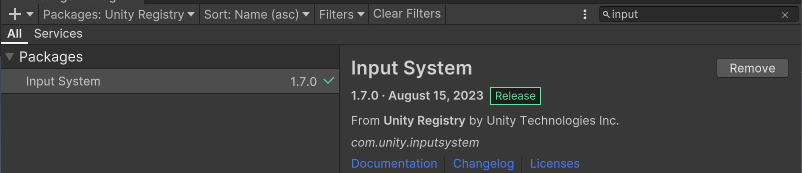 먼저 Unity에서 제공하는 InputSystem 에셋을 다운 받는다.