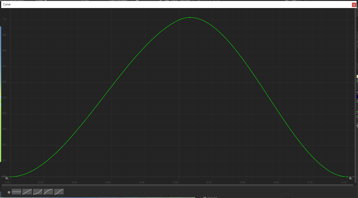 intensity(강도)는 AnimationCurve를 이용했고 inspector 창에서 값을 조정했다.