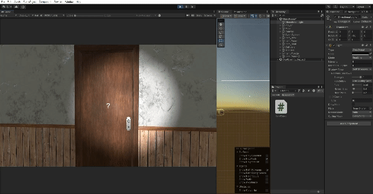 상호작용을 해서 bool 값이 변경되면 문의 피벗 기준으로 회전하게 만들었다. 이렇게 했을 때의 문제점은 방향에 있다. 문을 열었을 때의 회전값과 닫았을 때의 값을 지정했기 때문에 밖에서 열든 안에서 열든 똑같은 방향으로만 열리게 되어있다. 상당히 부자연스럽고 불편하기 때문에 플레이에 영향이 될 것 같아서 조금 더 고민해야 할 것 같다.