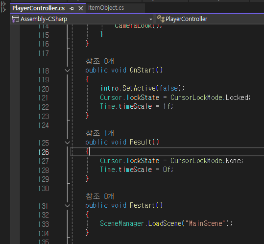 마지막에 급하게 작업하느라 게임 매니저 부분을 부실하게 만들었다. 게임 매니저를 따로 두려고 했더니 Time.timeScale이 작동하지 않아 이런 저런 시도 끝에 플레이어 컨트롤러 스크립트에 게임 매니저에 관한 로직을 넣었다. til을 쓰고 있는 지금 찾아본 끝에 Time.timeScale은 보통 한 스크립트에서 관리한다는 것을 알았다. 그래서 내일 게임 매니저를 정리하고 그쪽에서 게임 싸이클을 관리해야 할 것 같다.
