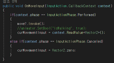 주로 사용하는 것은 코드에서도 확인 가능한 Get<Vector2>()와 isPressed가 있다. 전자는 위에서 설명한 것과 같이 값을 받아오는 것이고 후자는 버튼이 눌렸는지에 대한 bool 값을 받아올 수 있다.